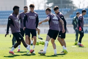 在進(jìn)行了一場對抗賽后,訓(xùn)練以射門和任意球練習(xí)結(jié)束。米利唐與球隊(duì)一起完成了一部分訓(xùn)練,阿拉巴、貝林厄姆、卡雷拉斯、塞巴略斯、姆巴佩和門迪繼續(xù)各自的恢復(fù)過程。