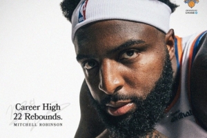 此役尼克斯中鋒米切爾·羅賓遜表現(xiàn)搶眼,出場30分鐘10投6中,拿到12分搶下22個籃板(9個前場),外加2搶斷2蓋帽,正負(fù)值+20。