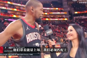 杜蘭特:我們的大個子缺陣,打了一晚上的小陣容,所以我們是一支很全面的球隊,我們會繼續(xù)進步。