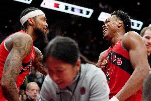 此役猛龍前鋒英格拉姆表現(xiàn)出色,打了38分鐘20投13中,三分6中5、罰球7中5砍全場(chǎng)最高36分外加7籃板3助攻1搶斷,正負(fù)值+17也是最高。