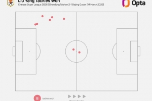 8 - 劉洋本場(chǎng)比賽有8次成功搶斷,刷新自2012年Opta采集相關(guān)數(shù)據(jù)以來(lái),山東泰山球員單場(chǎng)中超新高。
