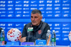 3月14日下午,成都蓉城隊主教練約翰·阿洛伊西和球員胡荷韜出席了賽前新聞發(fā)布會。