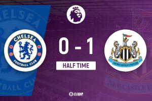 半場結(jié)束,切爾西暫0-1紐卡斯?fàn)枴?/p>