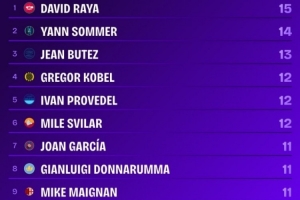 排在他身后的是國(guó)米門將索默,有14場(chǎng)零封。巴薩門將霍安·加西亞、曼城門將多納魯馬、米蘭門將邁尼昂和皇馬門將庫(kù)爾圖瓦都是11場(chǎng)零封。