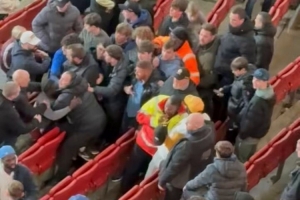 比賽結(jié)束后,埃弗頓球迷所在的看臺(tái)發(fā)生了混亂,埃弗頓球迷互相毆打。