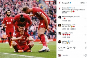 利物浦官方社媒曬出若塔那場比賽慶祝進球的照片,緬懷這位去世的前鋒,配文:“2023年那場不可思議的4-3擊敗熱刺的比賽?!?/p>