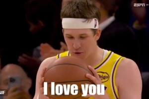 GIF-里夫斯1+2之后對著籃球說:I Love You!