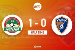 傷停補(bǔ)時(shí)3分鐘。上半場(chǎng)比賽結(jié)束,河南1-0云南玉昆。