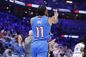 此役雷霆替補(bǔ)雙射以賽亞·喬和麥凱恩手感火熱,喬出戰(zhàn)21分鐘,投籃14中8,三分8中4,砍下20分4籃板,麥凱恩出戰(zhàn)17分鐘,投籃10中5,三分9中5,得到15分1搶斷。