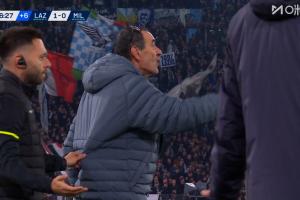 體育資訊03月16日訊 米蘭vs拉齊奧第97分鐘,補(bǔ)時(shí)時(shí)間已過,裁判對場邊薩里出示紅牌!薩里在抗議補(bǔ)時(shí)時(shí)間!