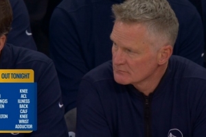 比賽中,轉播方曬出了勇士的傷病名單,以下球員今天都不能出戰(zhàn):