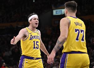湖人后場搭檔里夫斯和東契奇第三節(jié)合力砍下30分。