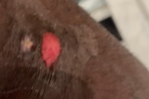 詹姆斯曬出他右腿上一處已經(jīng)皮膚破損的傷口寫道:“也許是因為那次那次年度最佳撲球!好痛啊????!哈哈!”
