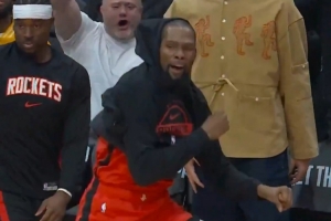 GIF-杜蘭特跳進(jìn)場內(nèi)慶祝謝潑德扣籃