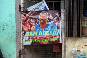 霍華德社媒曬出的照片中,菲律賓球迷慶祝阿德巴約拿到83分,但是用的是霍華德的照片?;羧A德還曬出了一張兩人照片對(duì)比。