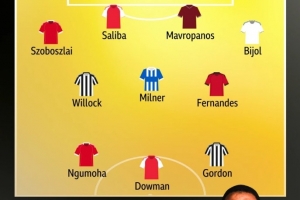附迪尼英超第30輪最佳陣:拉姆斯代爾(紐卡);索博斯洛伊(利物浦)、薩利巴(阿森納)、馬夫羅帕諾斯(西漢姆)、比約爾(利茲聯(lián));威洛克(紐卡)、米爾納(布萊頓)、B費(fèi)(曼聯(lián));戈登(紐卡)、恩古莫哈(利物浦)、道曼(阿森納)