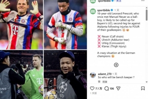 體育資訊3月17日訊 據(jù)《RMC》報(bào)道,拜仁16歲門將普雷斯科特幾周前還是在諾伊爾身后撿球的球童,如今他有望成為球隊(duì)隊(duì)史出場(chǎng)第二年輕球員,僅次于萬(wàn)納爾。