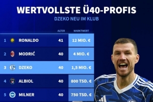 德轉列現(xiàn)役年齡40歲及以上的球員身價排行