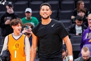 體育資訊3月18日訊 太陽社媒曬出了昨日對(duì)陣綠軍比賽時(shí),布克上腳的球鞋。