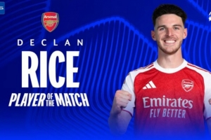 賴斯本場(chǎng)比賽為阿森納踢滿全場(chǎng),并打進(jìn)一球,歐冠官方宣布,他當(dāng)選此役全場(chǎng)最佳球員。