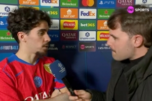 體育資訊3月18日訊 歐冠1/8決賽次回合,巴黎客場3比0擊敗切爾西,總比分8比2大勝晉級8強。賽后,巴黎中場維蒂尼亞接受了TNT體育的采訪。