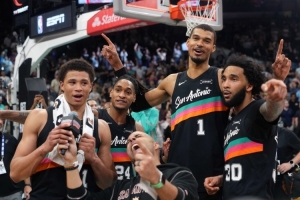 霍里表示:“他們有一個(gè)外星人文班亞馬,別的隊(duì)友都在他的陰影之下,但馬刺大概有8個(gè)人場均得分上雙,那說明了他們?cè)诖驁F(tuán)隊(duì)籃球。你看聯(lián)盟那些強(qiáng)隊(duì),雷霆很出色因?yàn)樗麄兇驁F(tuán)隊(duì)籃球,波士頓也是,其他球隊(duì)就很少打團(tuán)隊(duì)籃球。
