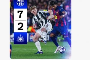 體育資訊03月19日訊 歐冠16強(qiáng)次回合,巴薩7-2總比分8-3狂勝紐卡。紐卡下半場(chǎng)泄氣,后半場(chǎng)比賽變成了巴薩單方面的比賽。紐卡官方X除了在下半場(chǎng)開始時(shí)說了句“小伙子們?nèi)σ愿啊焙?,除了發(fā)布換人信息,之后的時(shí)間變成了報(bào)分機(jī)器人。