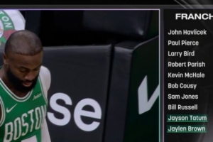 (截至發(fā)稿,杰倫·布朗已拿到23分,超越喬·懷特和戴夫·考恩斯)
