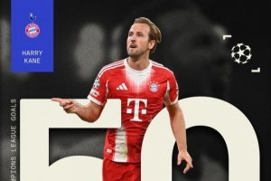 據(jù)媒體統(tǒng)計,凱恩成為歐冠歷史第11位打進50球的球員,也是英格蘭球員首人。
