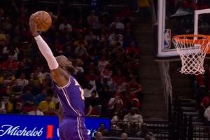體育資訊3月19日訊 湖人客場再戰(zhàn)火箭,截至發(fā)稿詹姆斯已經(jīng)上演3次炸裂扣籃。