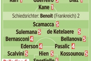 體育資訊3月19日訊 歐冠1/8決賽次回合比賽,拜仁主場(chǎng)4-1擊敗亞特蘭大,總比分10-2晉級(jí),《圖片報(bào)》對(duì)兩隊(duì)球員和教練進(jìn)行了評(píng)分。