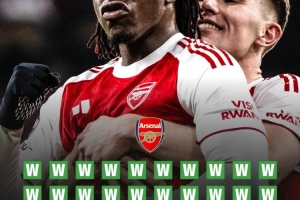 本賽季,阿森納各項賽事49場比賽已經(jīng)取得了38場勝利,比2003-04賽季的不敗賽季取勝場次還要多1場。