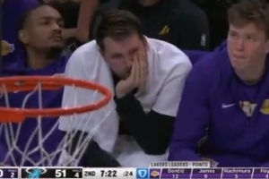 GIF-東契奇替補(bǔ)席托著下巴一臉疲憊