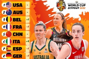 其中,美國女籃穩(wěn)居榜首,澳大利亞女籃跟隨其后,中國女籃排在第5位。