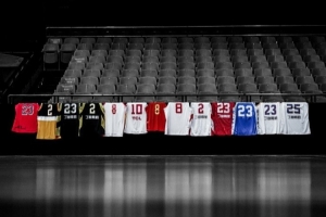丁彥雨航曬出一張照片,照片中丁彥雨航生涯穿過的球衣整齊搭在欄桿上。配文寫道:“2026.3.3丙午年正月十五。”