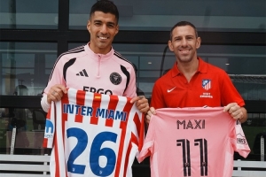 本周末馬競之家在邁阿密舉辦活動(dòng),馬競代表團(tuán)前往邁阿密國際訓(xùn)練中心,探班曾效力馬競的蘇亞雷斯,馬克西·羅德里格斯與蘇亞雷斯互贈(zèng)球衣并合影。