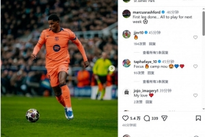 此役拉什福德為巴薩替補(bǔ)出場,賽后他在社交媒體上曬出比賽照片,配文:“首回合結(jié)束,下周決勝負(fù)。”