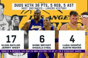 東契奇和里夫斯連續(xù)三場(chǎng)同場(chǎng)30+5+5 歷史首對(duì)隊(duì)友